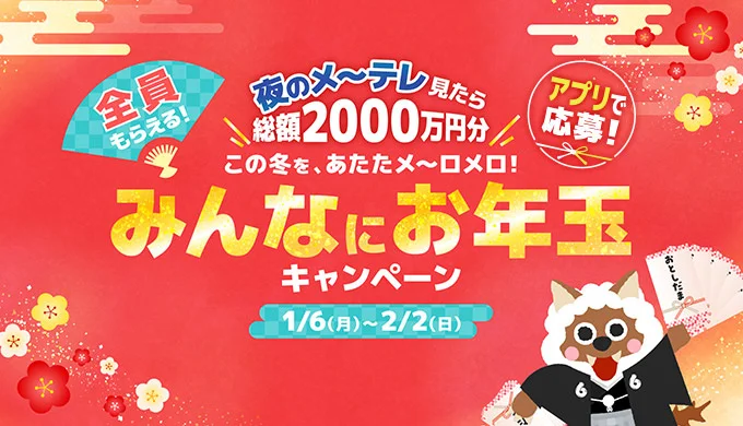 【終了】この冬を、あたたメ~ロメロ!みんなにお年玉キャンペーン – 名古屋テレビ|メ~テレ
