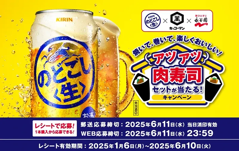 【終了】キリン のどごし 「アツアツ肉寿司セット」が当たる!キャンペーン