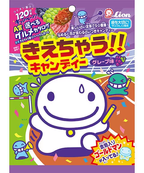 ライオン菓子さん主催のキャンペーンです。対象商品のキャンディーを買って、パッケージ裏面の応募券をハガキに貼って応募すると、抽選でグルメカタログまたはきえちゃう君オリジナルポーチが当たります。